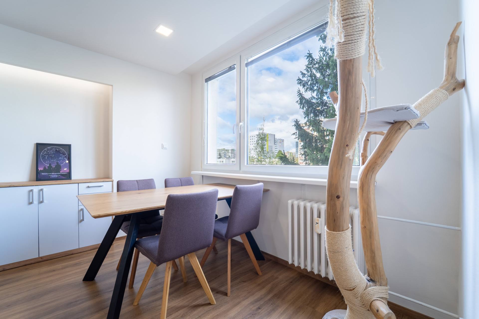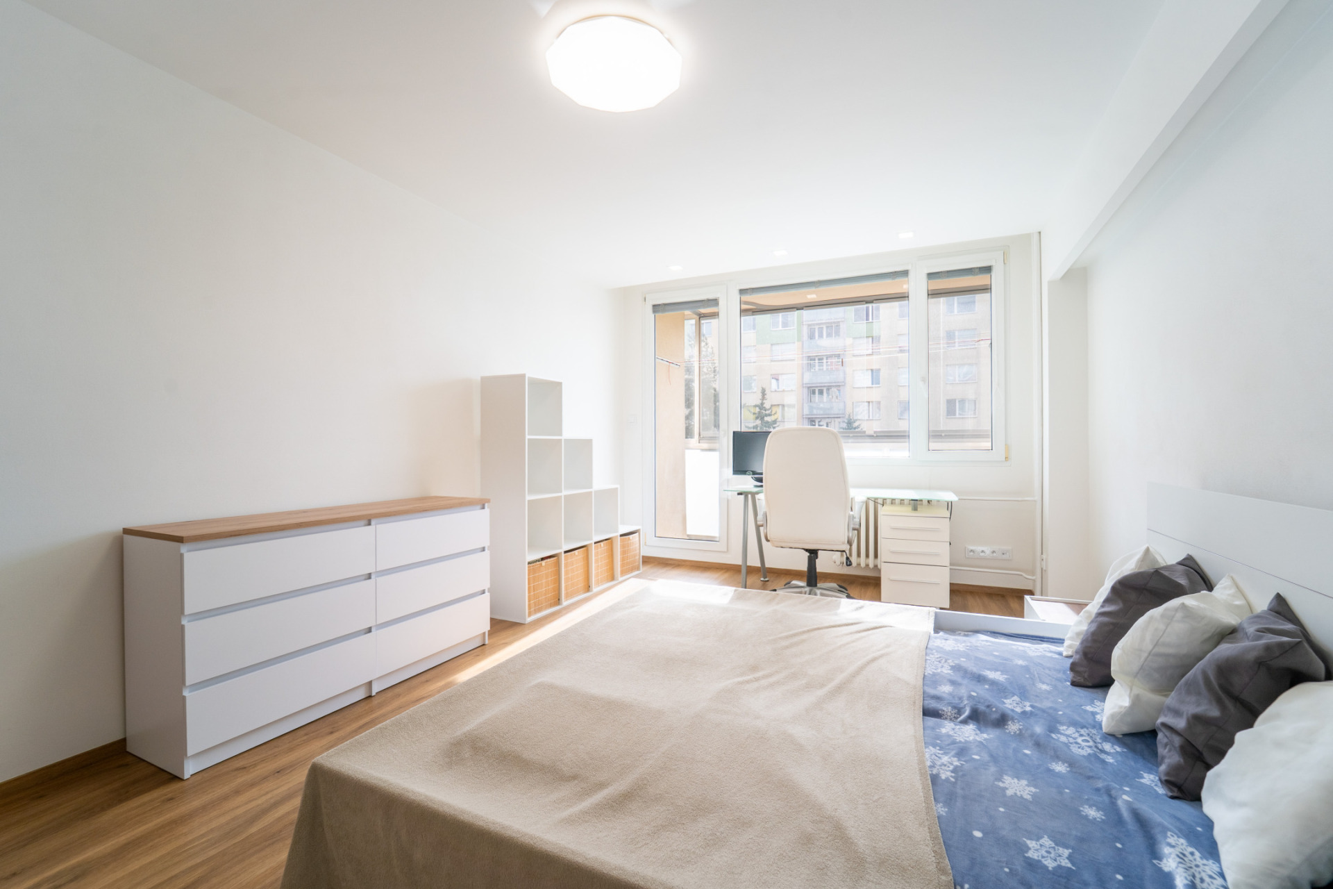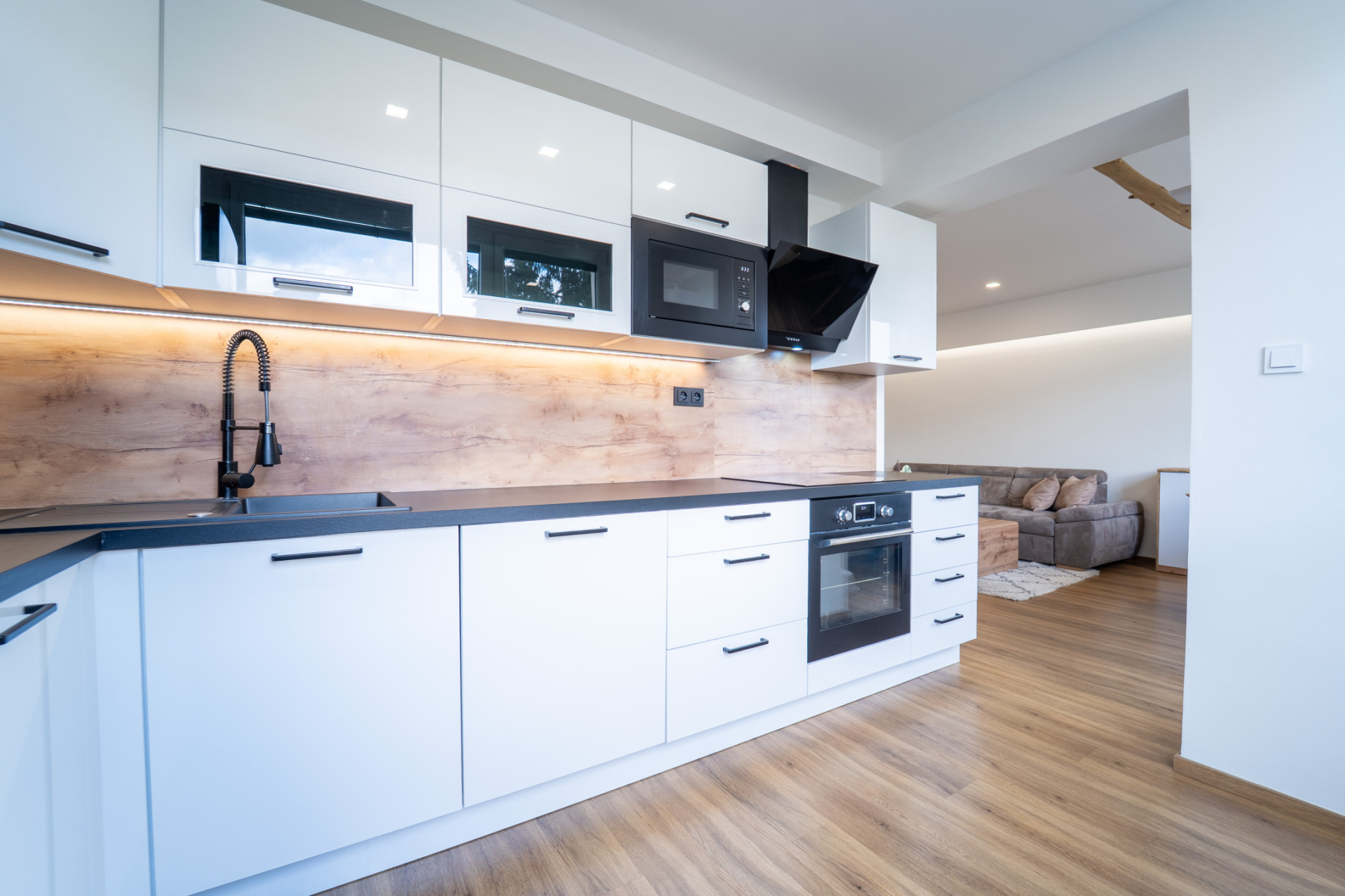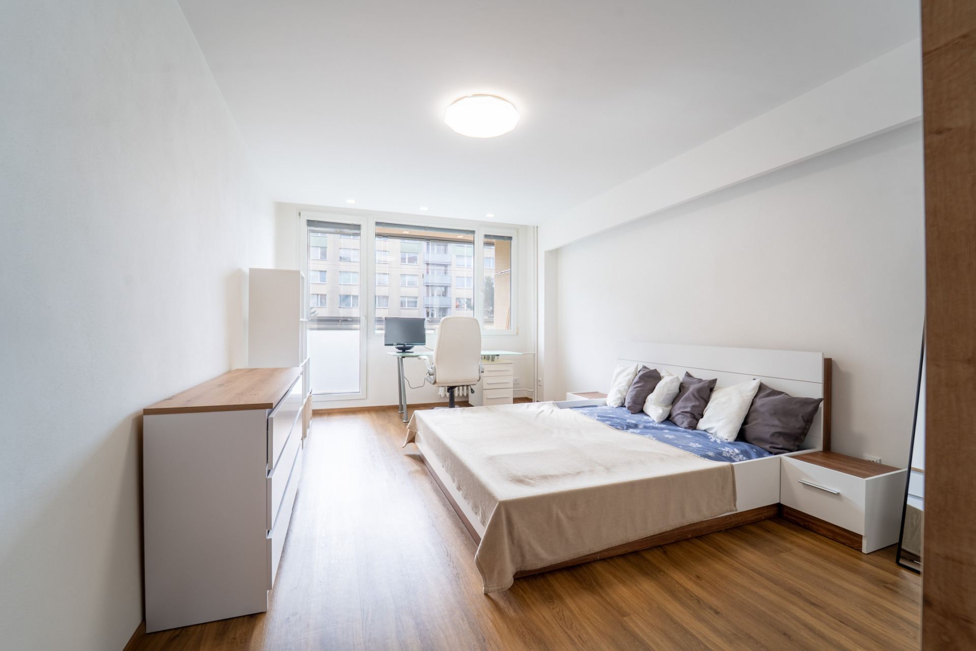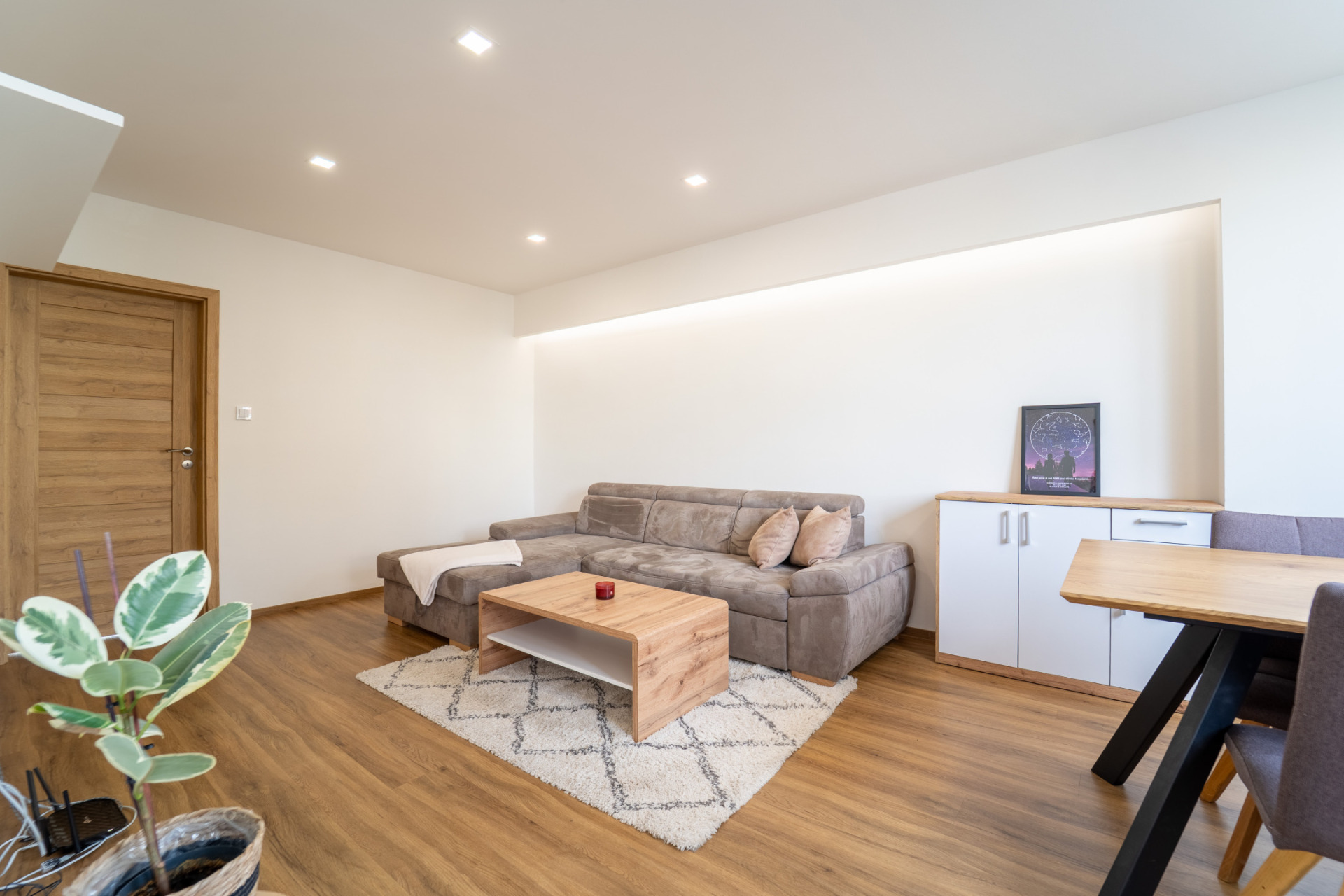 Byt prošel v roce 2021 kompletní rekonstrukcí (nové rozvody elektřiny, vody i odpadů, nové příčky, stropní podhledy s izolací). V obytných místnostech je jednotná vinylová podlaha, v předsíni praktické vestavěné úložné prostory s podsvícením. Kuchyňská linka je plně vybavena spotřebiči (lednice, trouba, indukční deska, myčka, mikrovlnná trouba). Z ložnice je vstup na zasklený balkon.