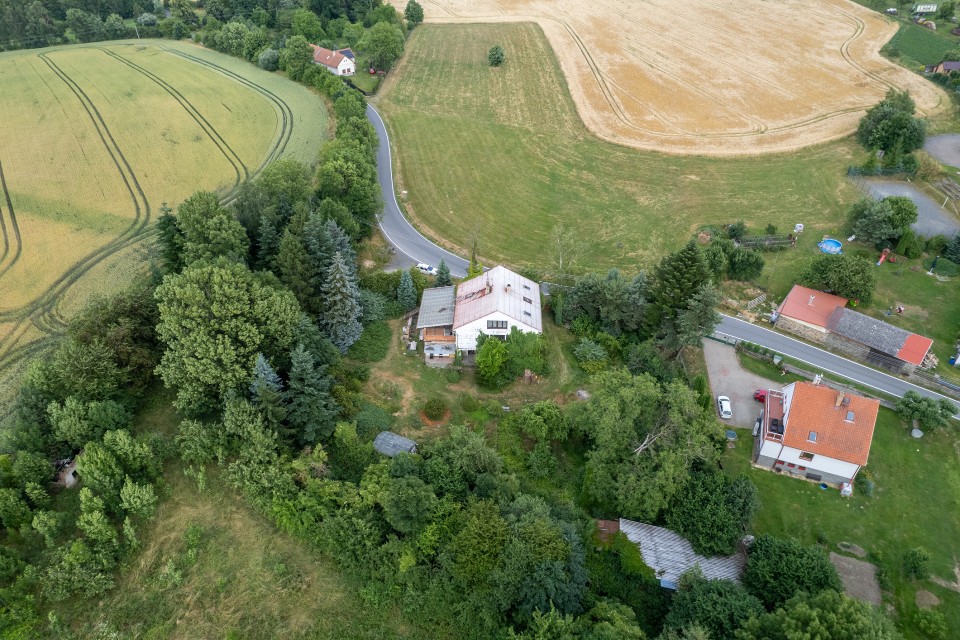 Podsklepený RD, vhodný k rekonstrukci, obec Bělice u Neveklova, pozemek 2278 m2. (Prodáno)