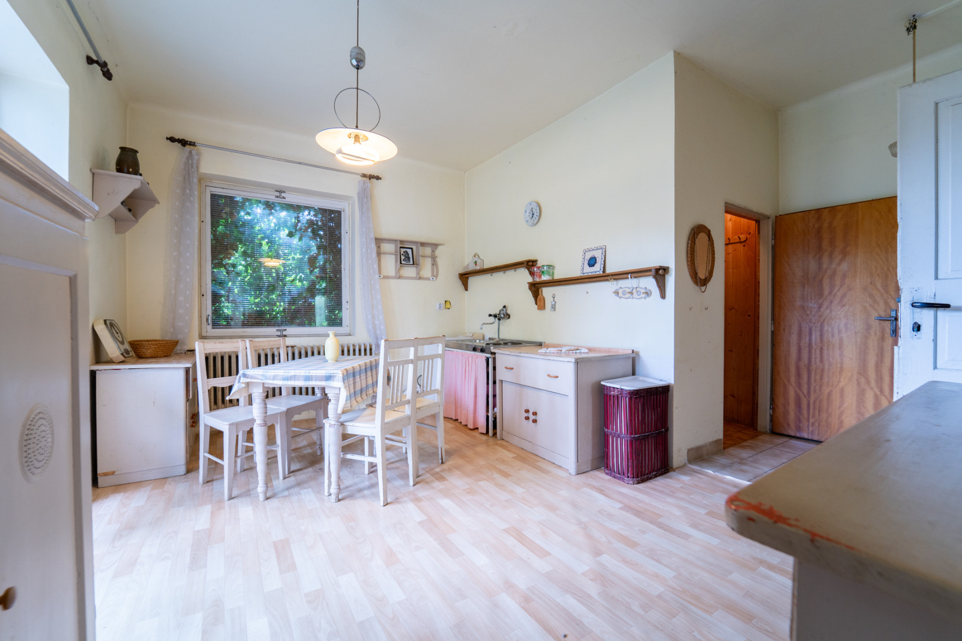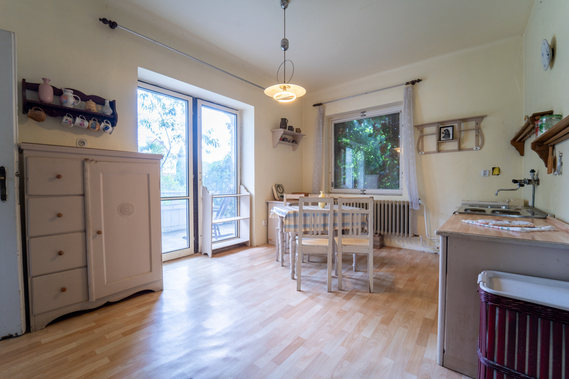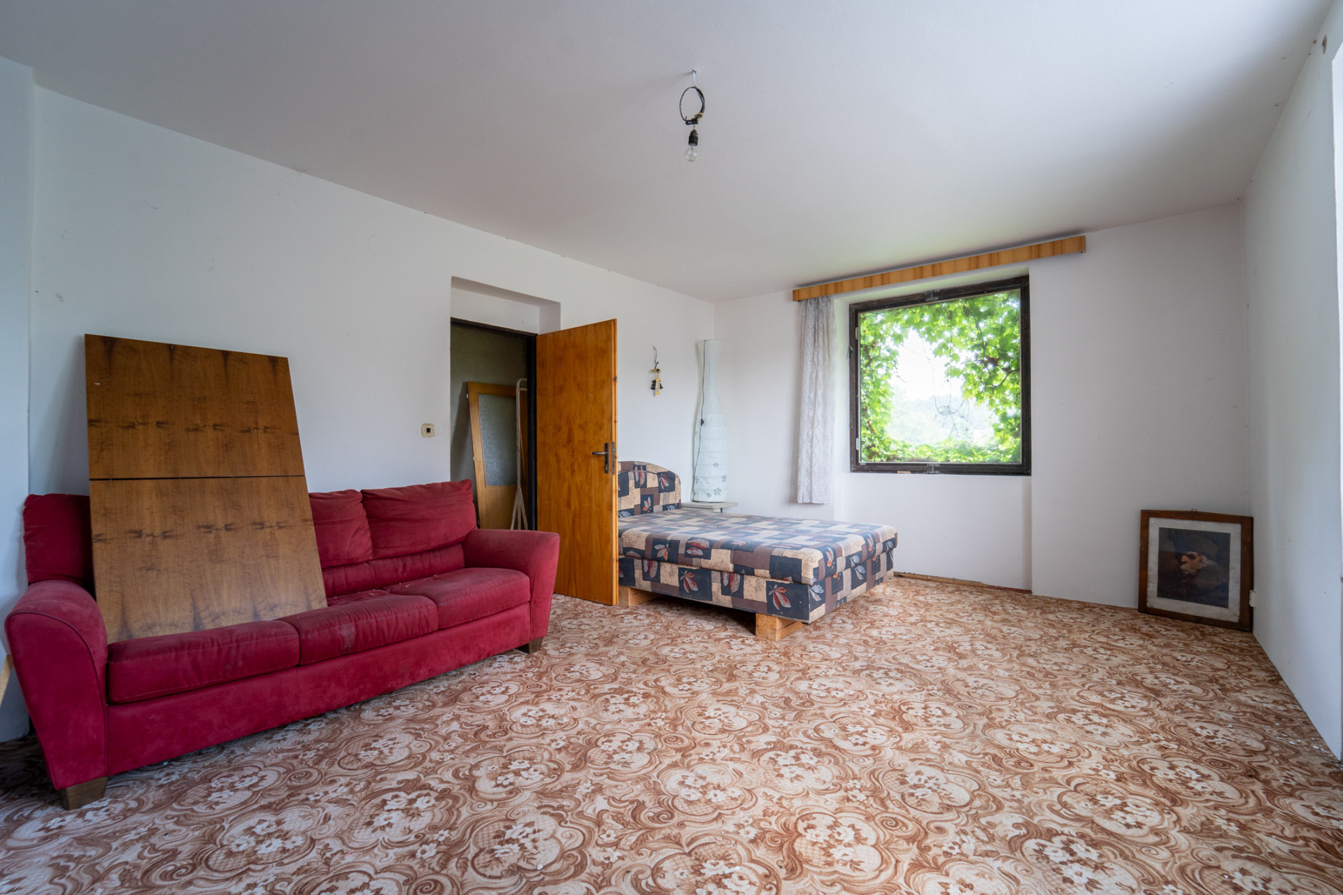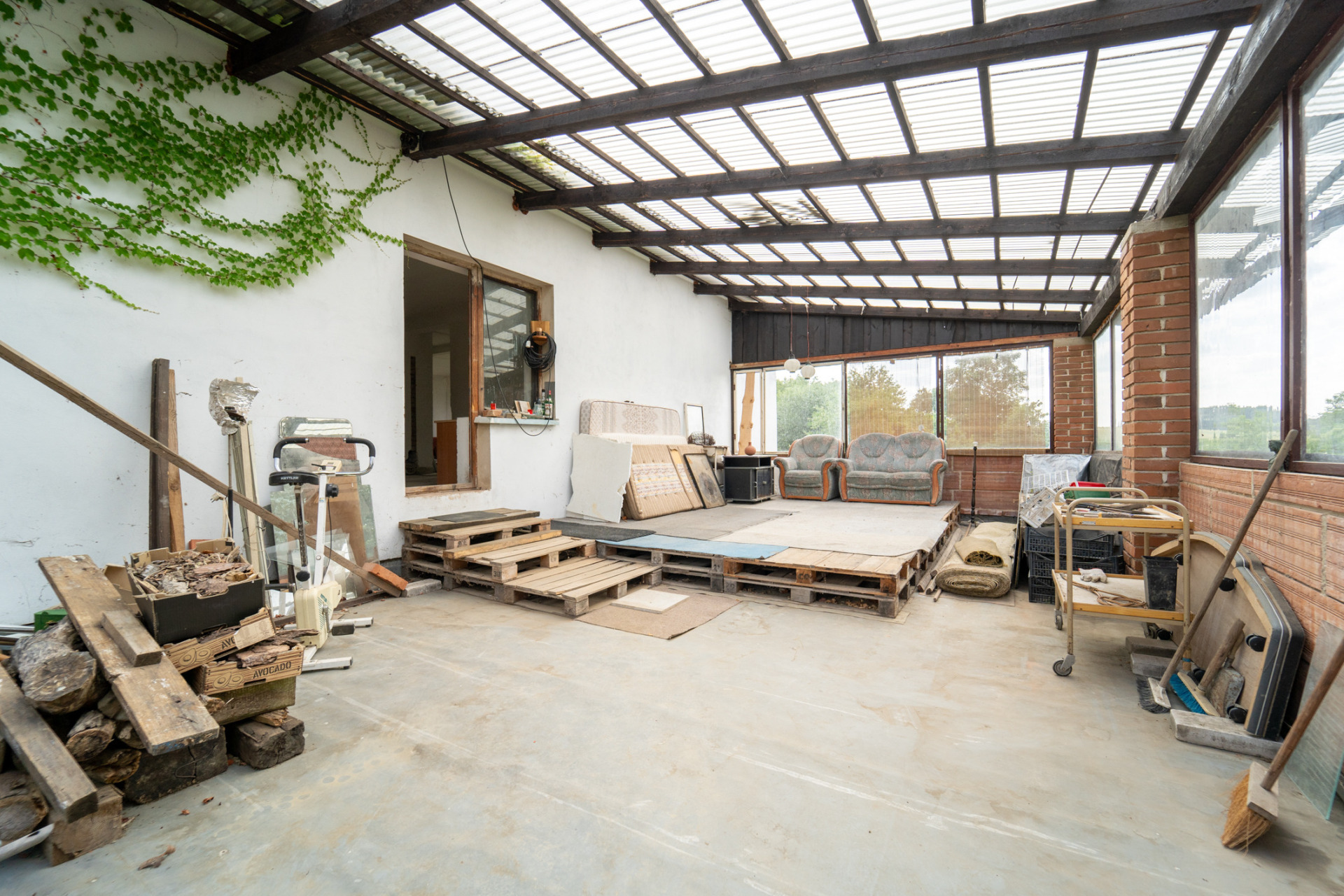 Starší vybavení, materiál, atp.. Na zahradě, zahradní domek na nářadí.