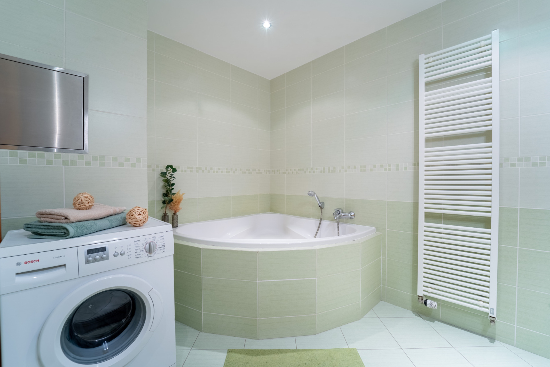 Vytápění zajištěné vlastní plynovou kotelnou v domě, v bytě pak podlahovými konvektory, radiátory a v koupelně podlahovým topením a otopným žebříkem. Podlahové krytiny tvoří parkety a dlažba. Okna orientována na jihozápad. Byt je tedy velmi vzdušný a světlý. Všechna okna pak mají elektricky ovládané venkovní rolety, které umožňují kompletní zatemnění bytu.