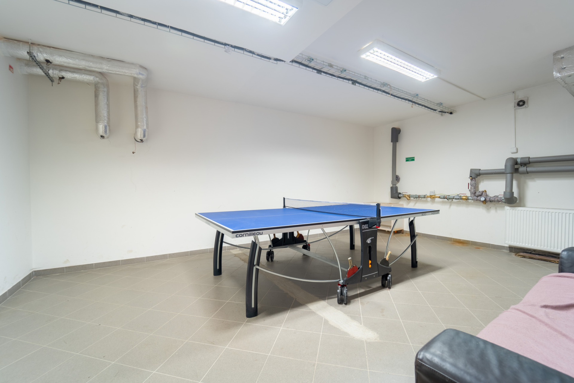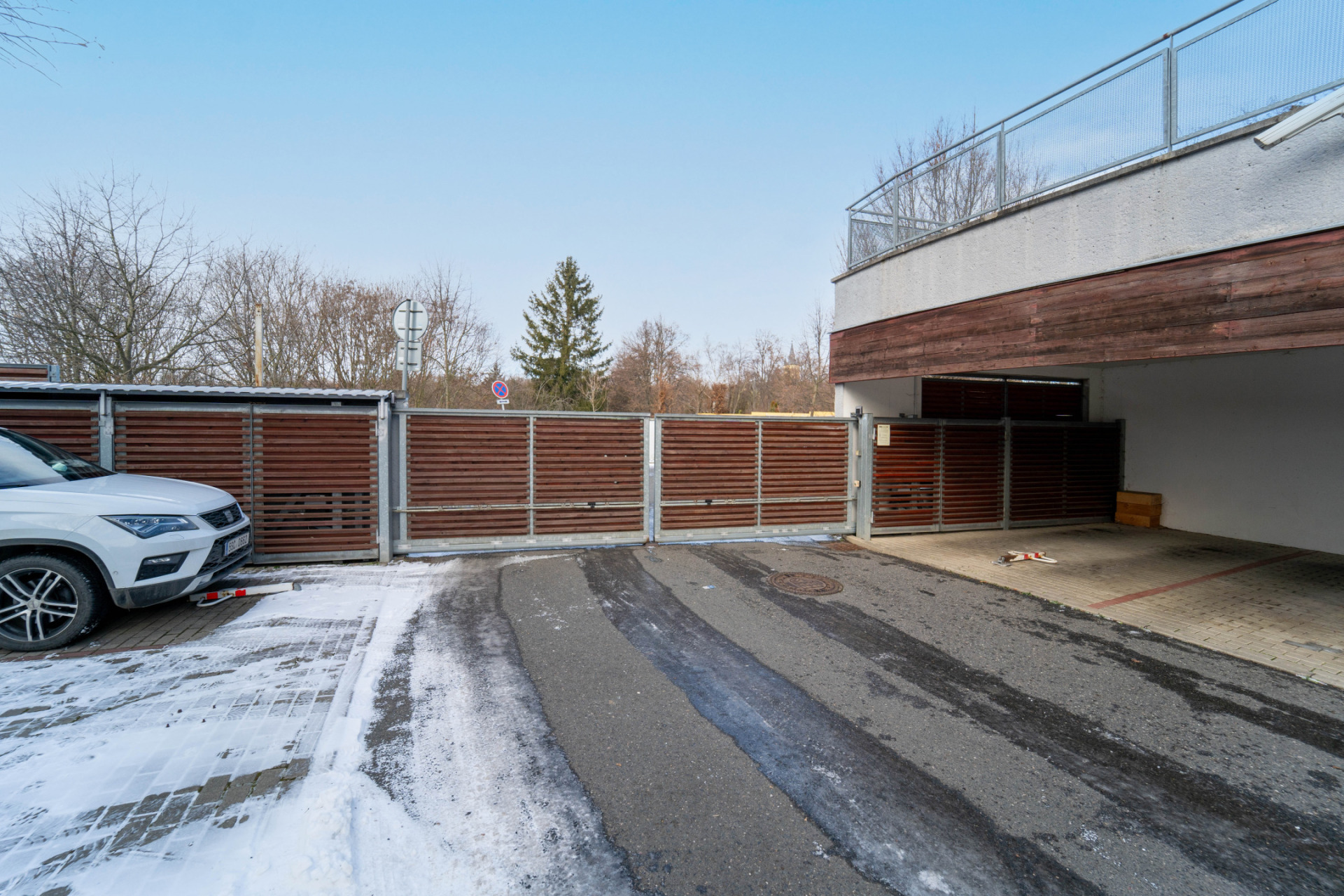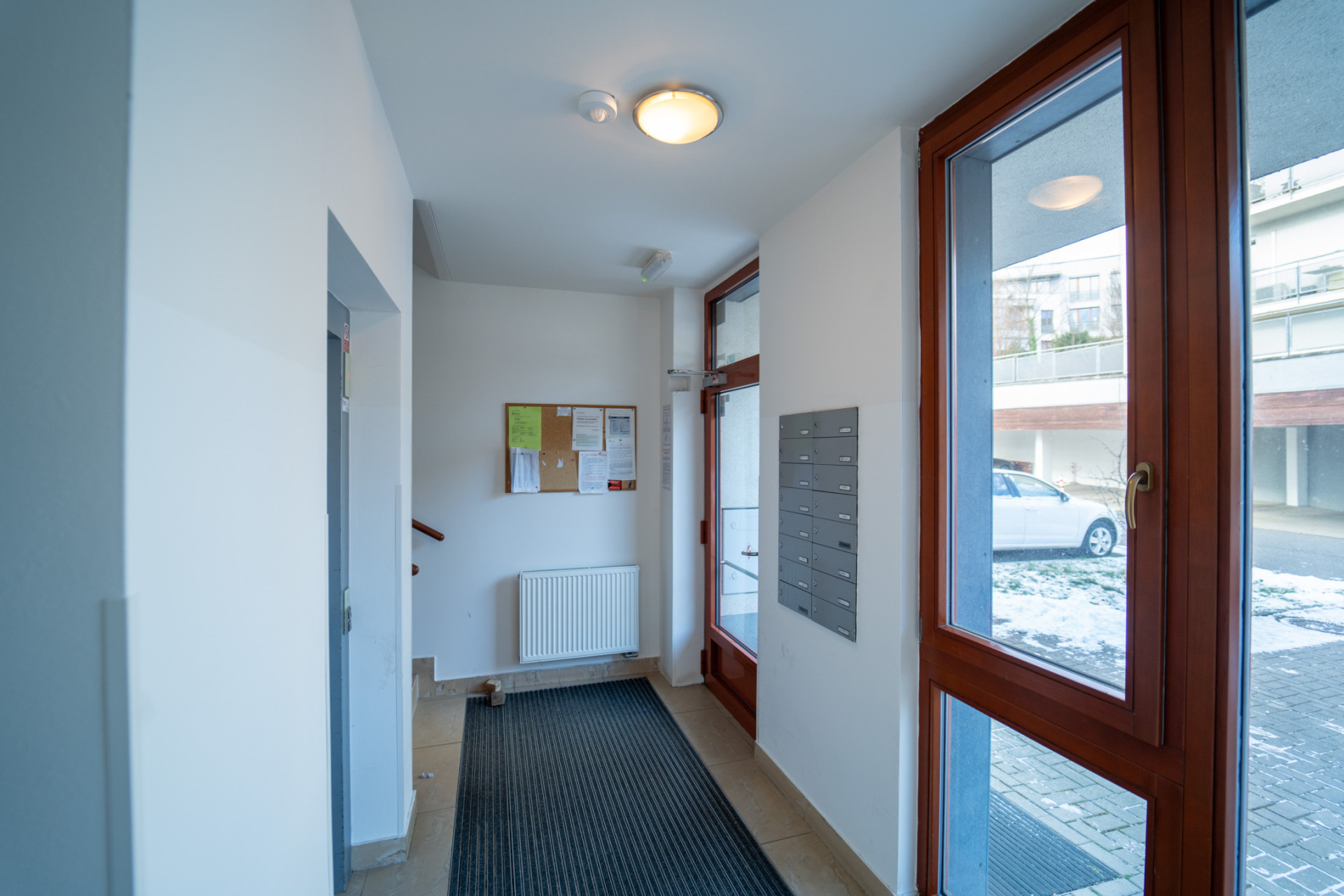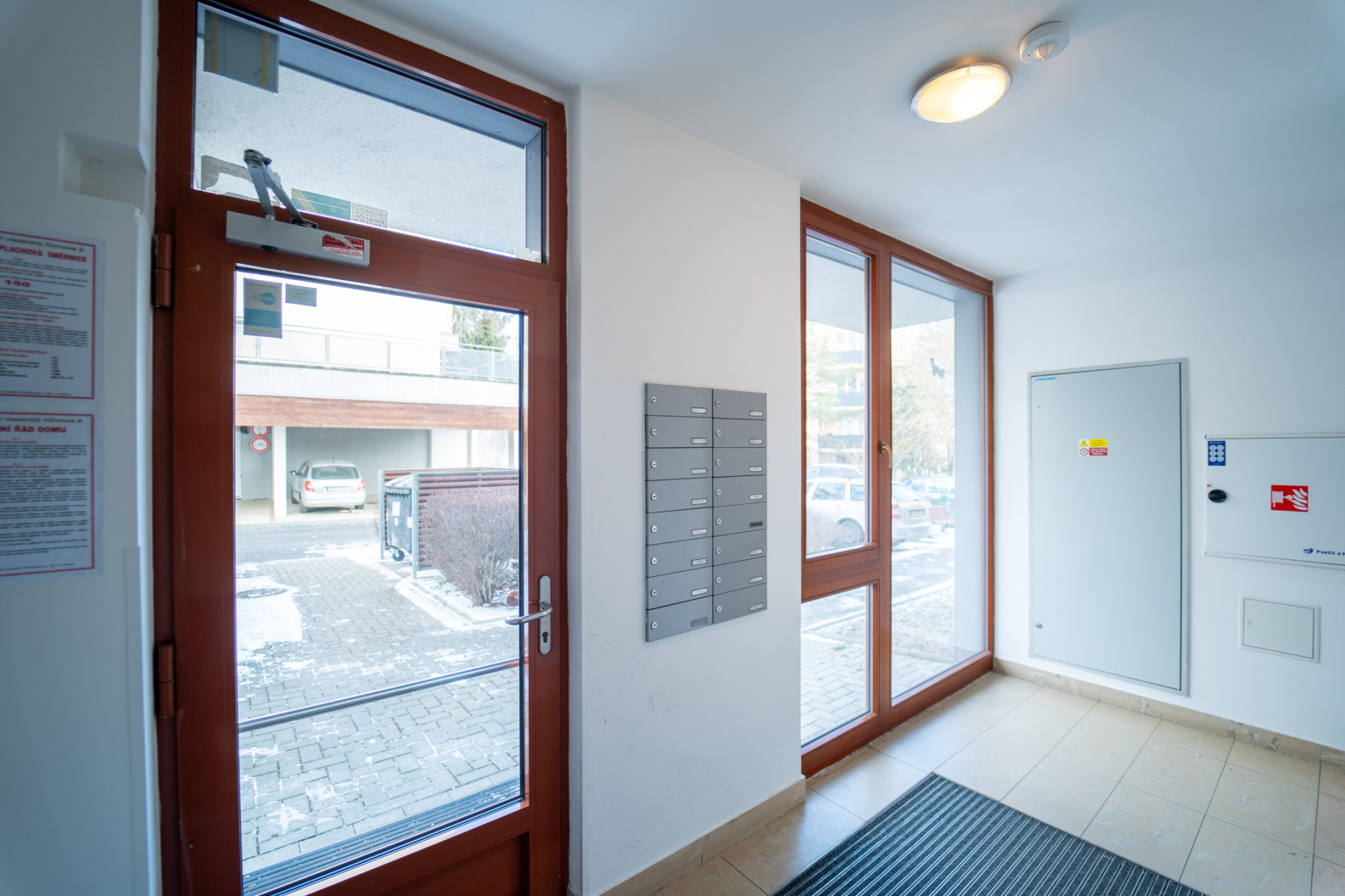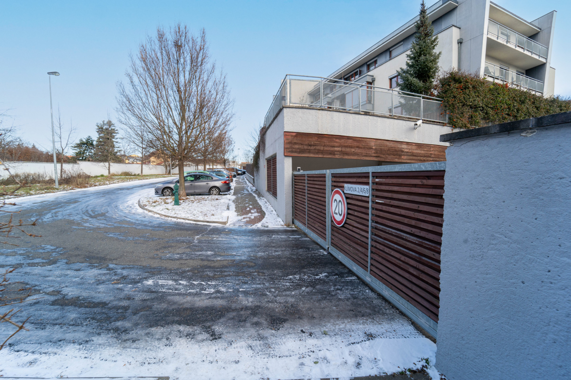K bytu náleží vyhrazené venkovní parkovací stání a zděný sklep o velikosti 2,4 m2 umístěný v 2.PP, dále pak v domě k dispozici kočárkárna/kolárna a místnost s pinpongovým stolem pro volné využití všech rezidentů.