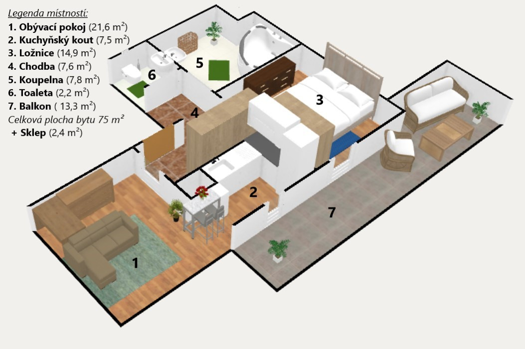 Prodej krásného bytu 2+KK/T/S, 75 m2, OV, ul. Klímova - Radlice (Prodáno)