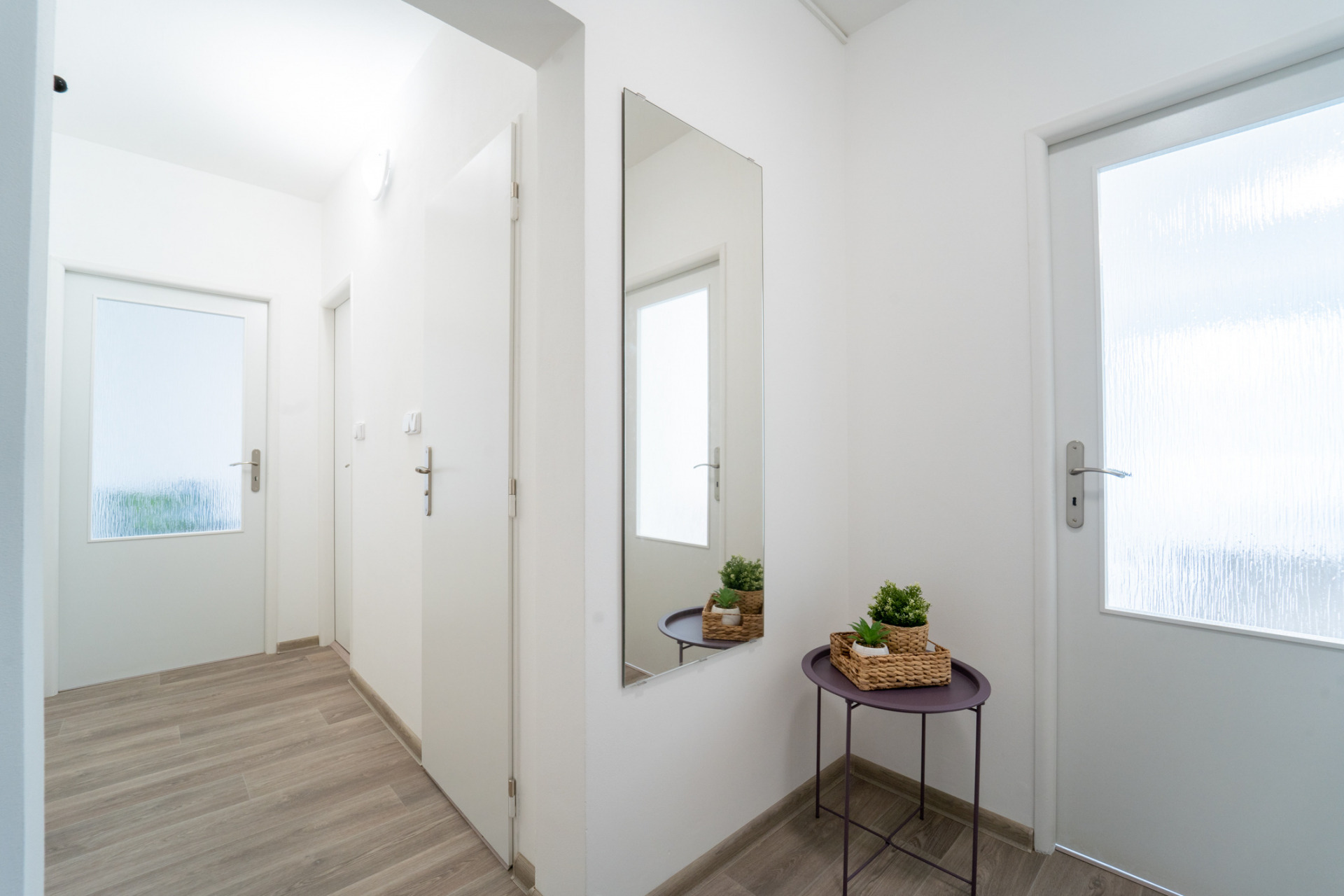 Byt se nachází ve 2. patře zrekonstruovaného panelového domu s výtahem. Dům prošel rekonstrukcí: stoupaček, odpadů, plastových oken, vchodů a vstupních vestibulů, fasády, střechy a výtahu.