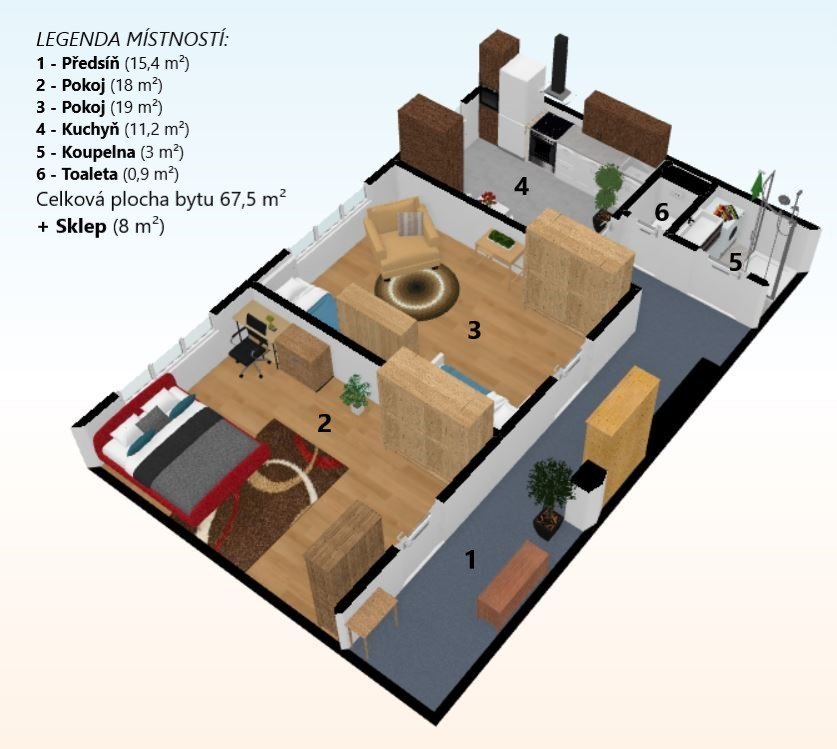 Pronájem krásného velkého bytu 2+1, 68 m2 + sklep, Herálecká III, P4 (Pronajato)