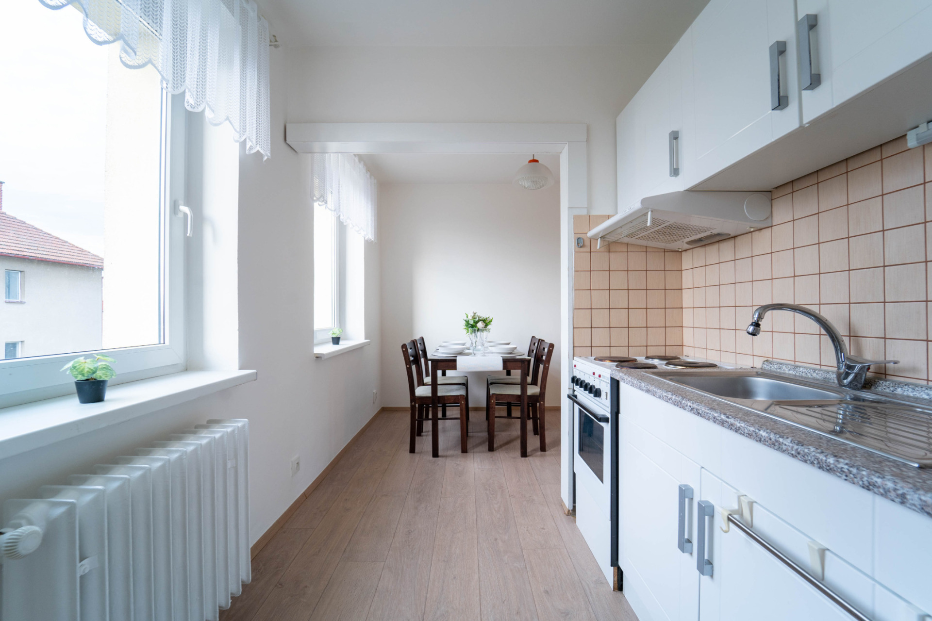Byt je pak ve velmi dobrém stavu se základními opravami a výmalbou, připravený k nastěhování pro nové nájemníky (jednotlivce, pár, či rodinu s max. 2 dětmi - preferujeme dlouhodobý pronájem).