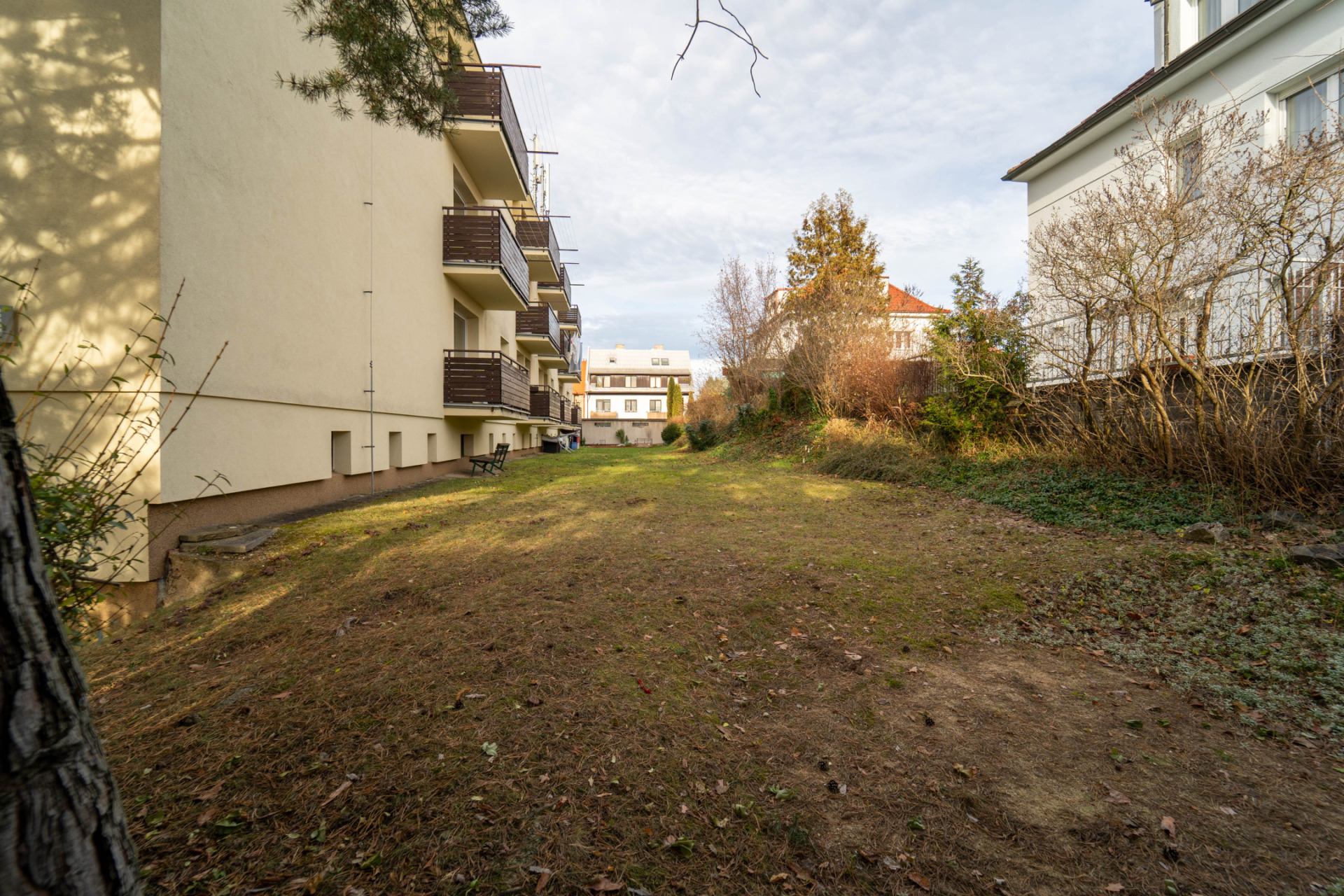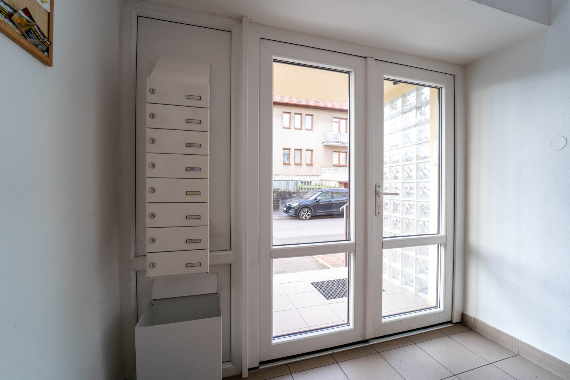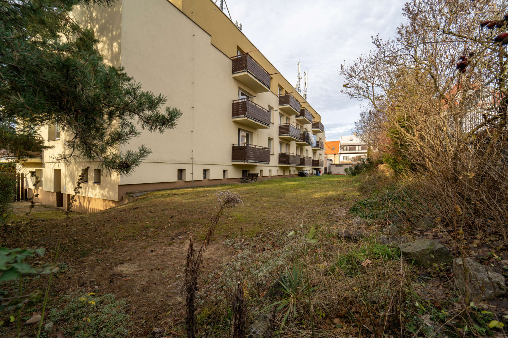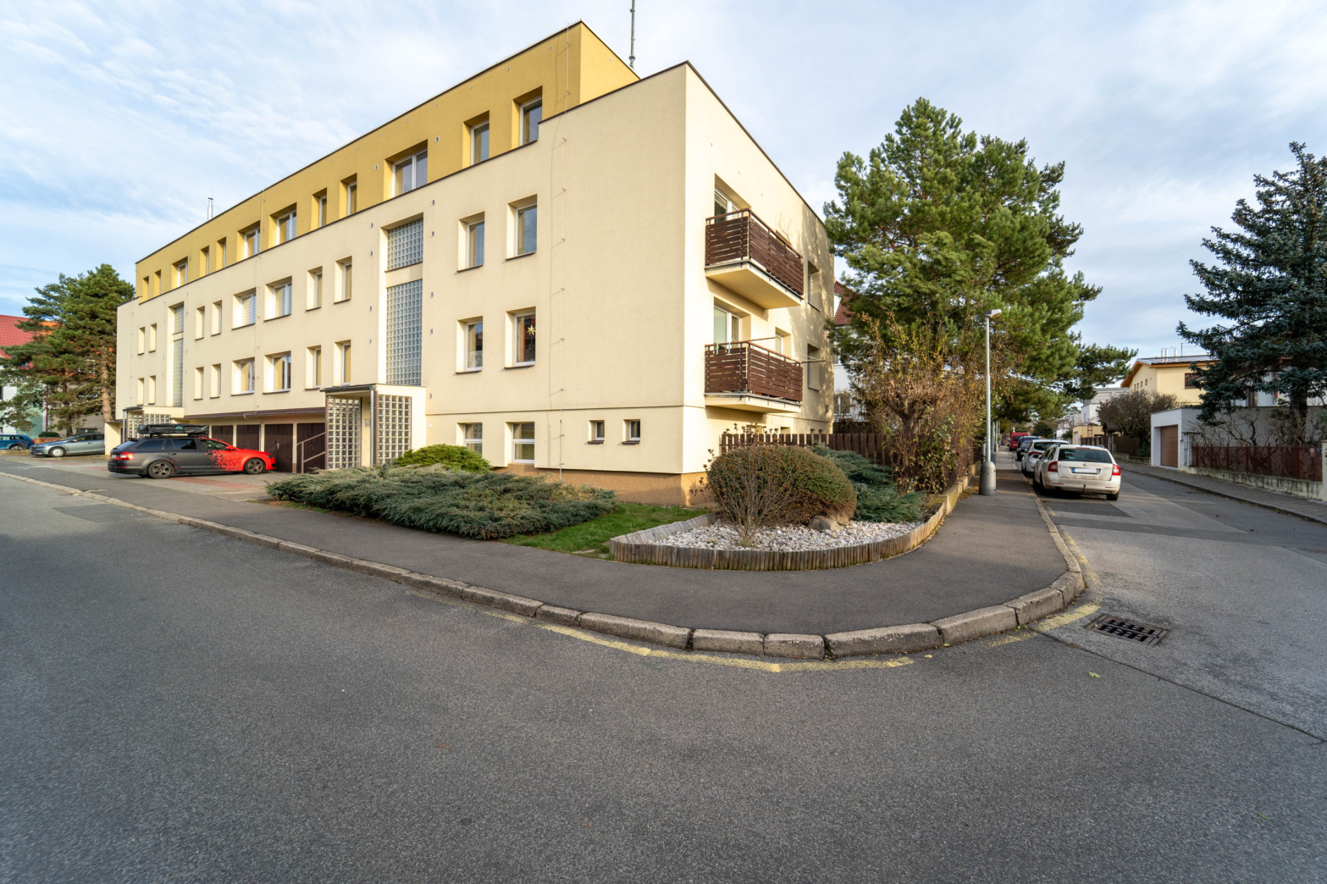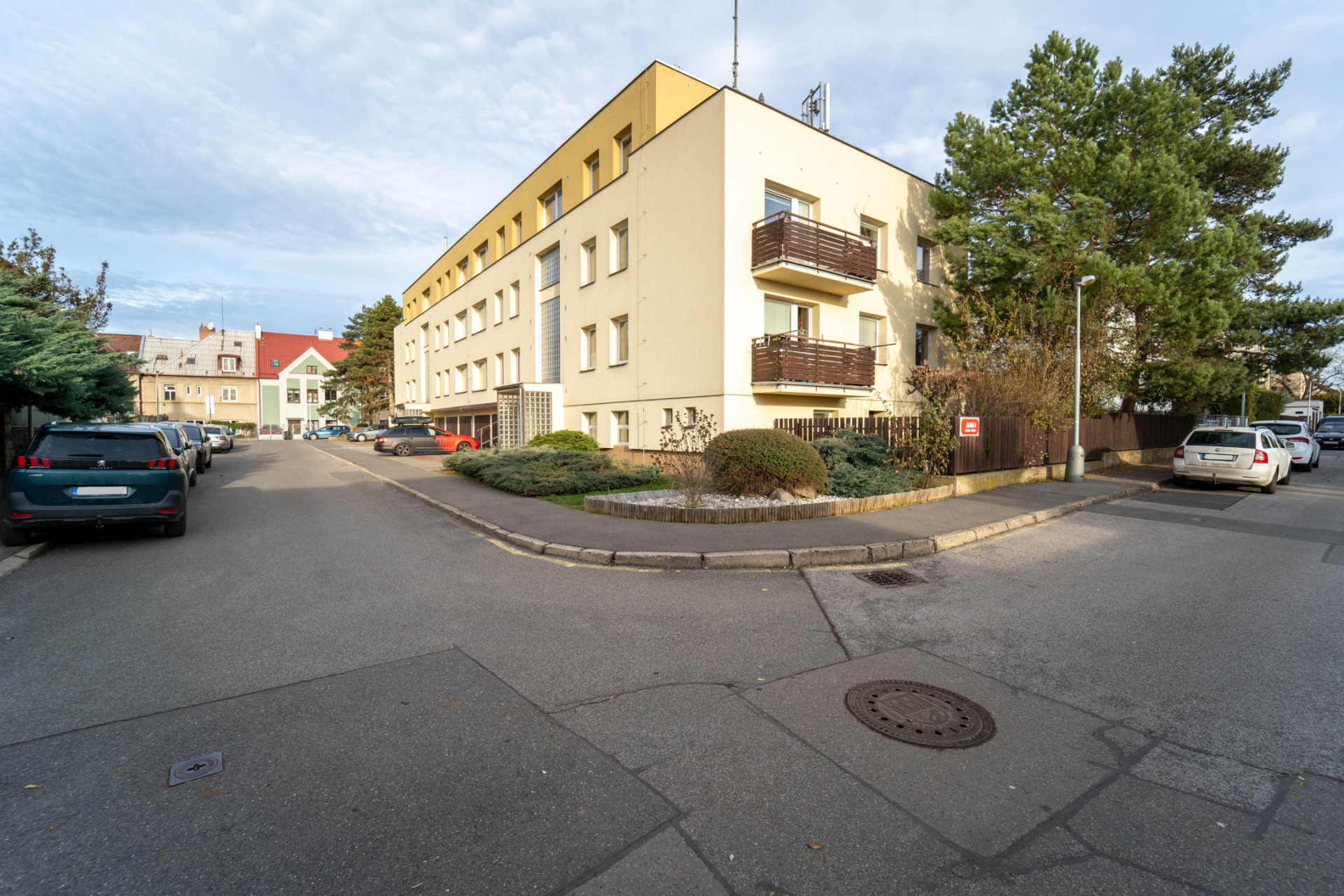 Byt se nachází v 1. patře menšího bytového domu bez výtahu (jedná se o jedno a půl poschodí a okna ve výšce 2.patra kvůli garážím). Dům je v dobrém stavu a prošel základní rekonstrukcí: stoupaček, odpadů, plastových oken, vchodu a fasády se střechou. V domě možnost využití sušárny s kočárkárnou. Parkování na ulici před domem.