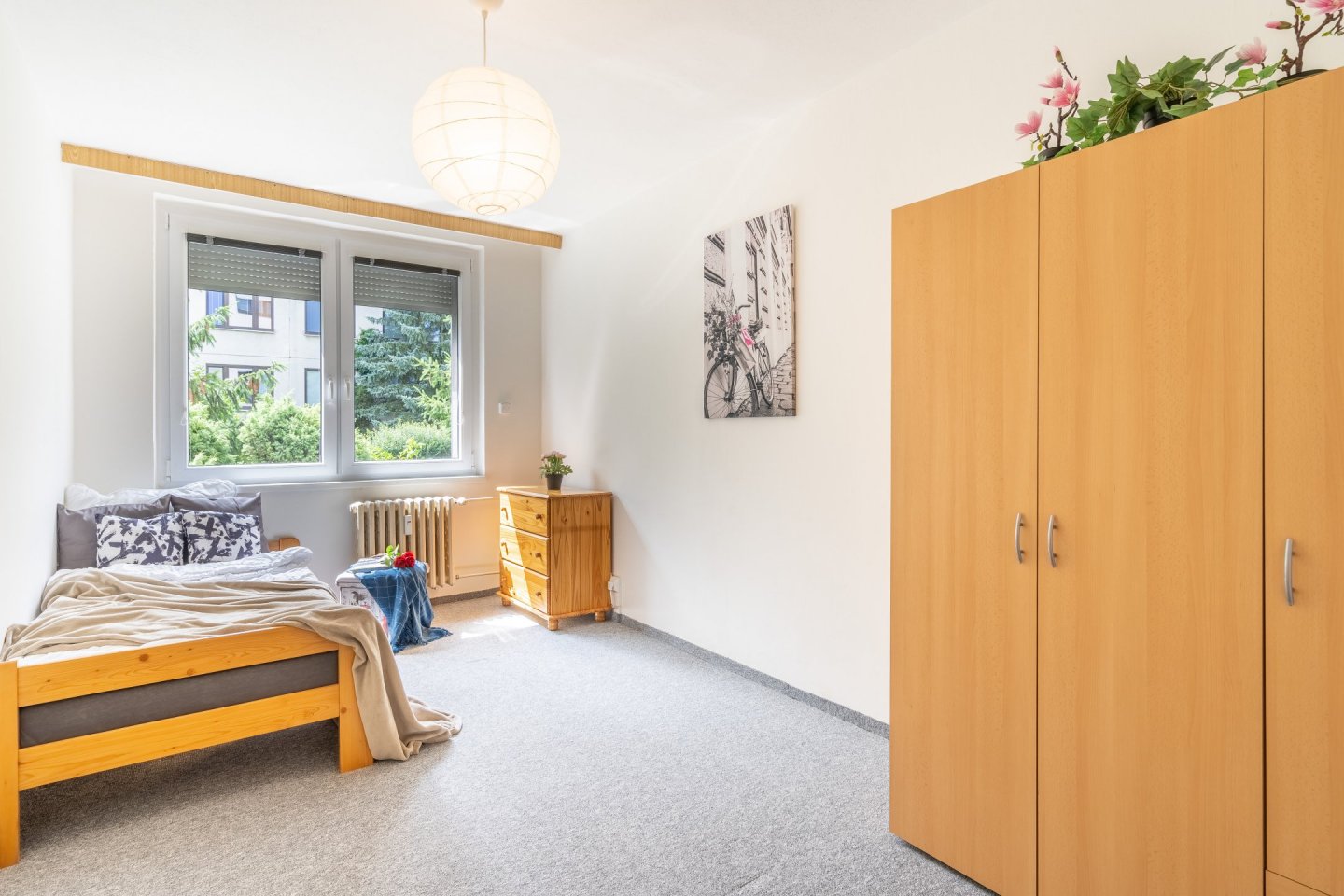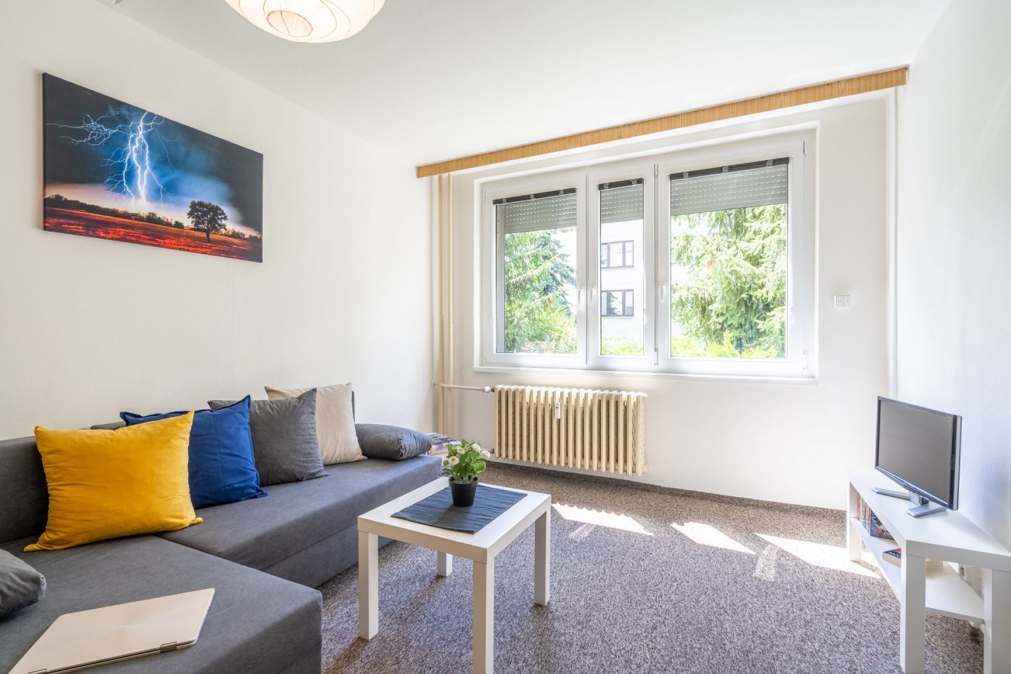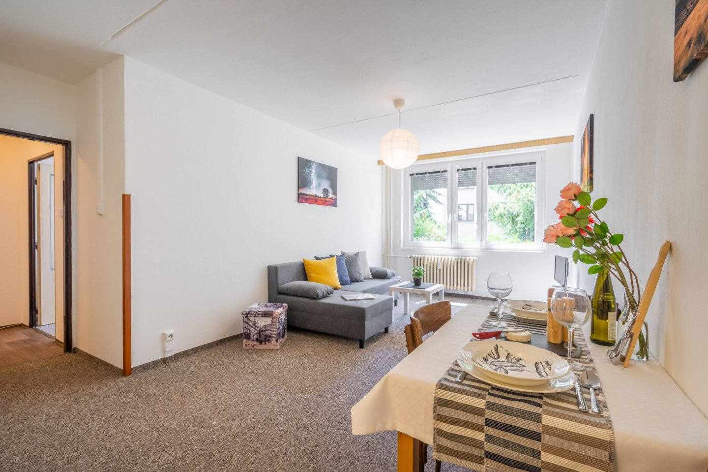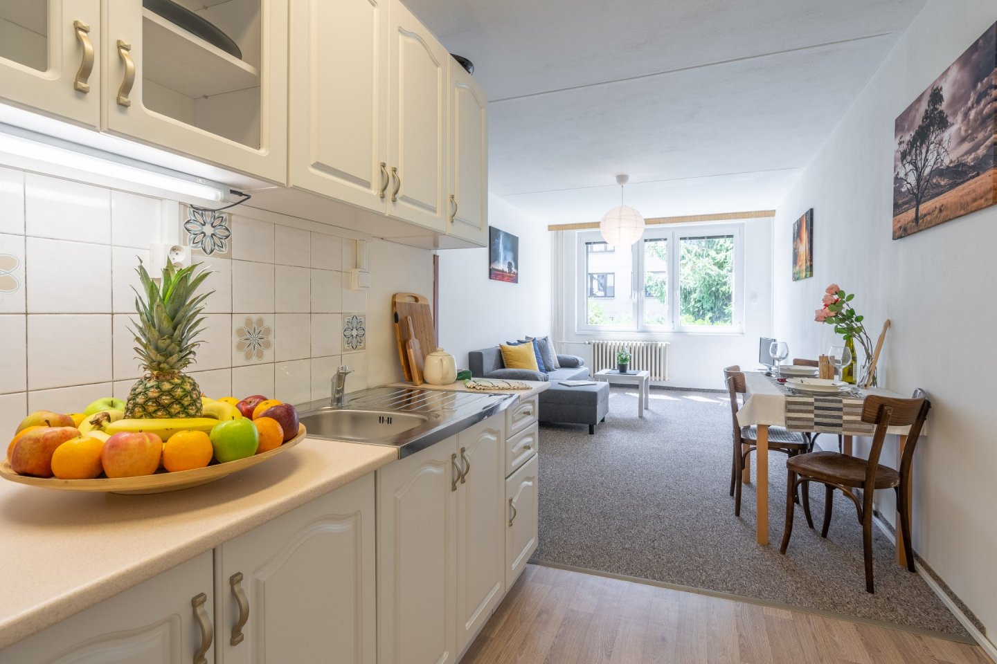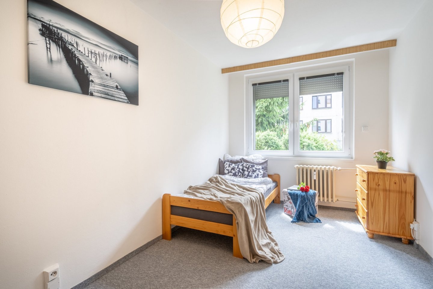 Dovolujeme si Vám nabídnout velmi pěkný a útulný byt 2+kk o velikosti 46,5 m2 + sklepní kóje 2 m2, v osobním vlastnictví. Byt se nachází ve zvýšeném přízemí (cca 3 m nad zemí) s orientací na JZ do zahrady čtyřpodlažního domu v klidné části Prahy - Stodůlky. Hned za domem je krásný park s cyklostezkami a Stodůleckým rybníčkem, naprosto úžasné místo pro relaxaci příjemné procházky. Stejně tak jako případné posezení a jiné sportovní vyžití. Metro Lužiny a Luka 5 min. Pohodové parkování před domem a veškerá občanská vybavenost v docházkové vzdálenosti.