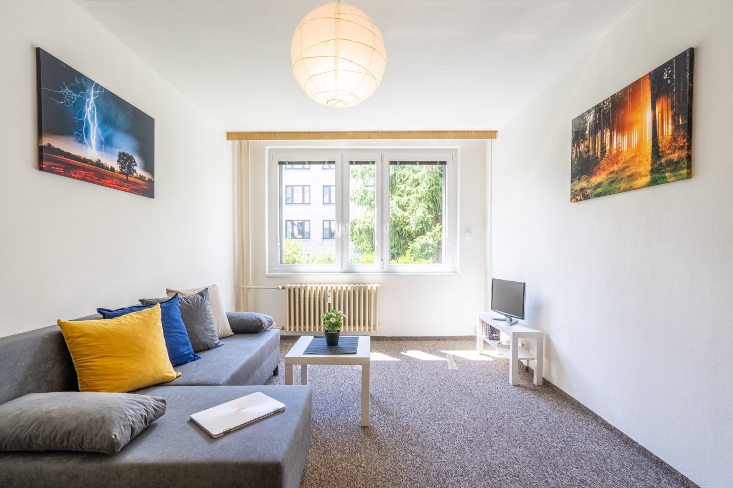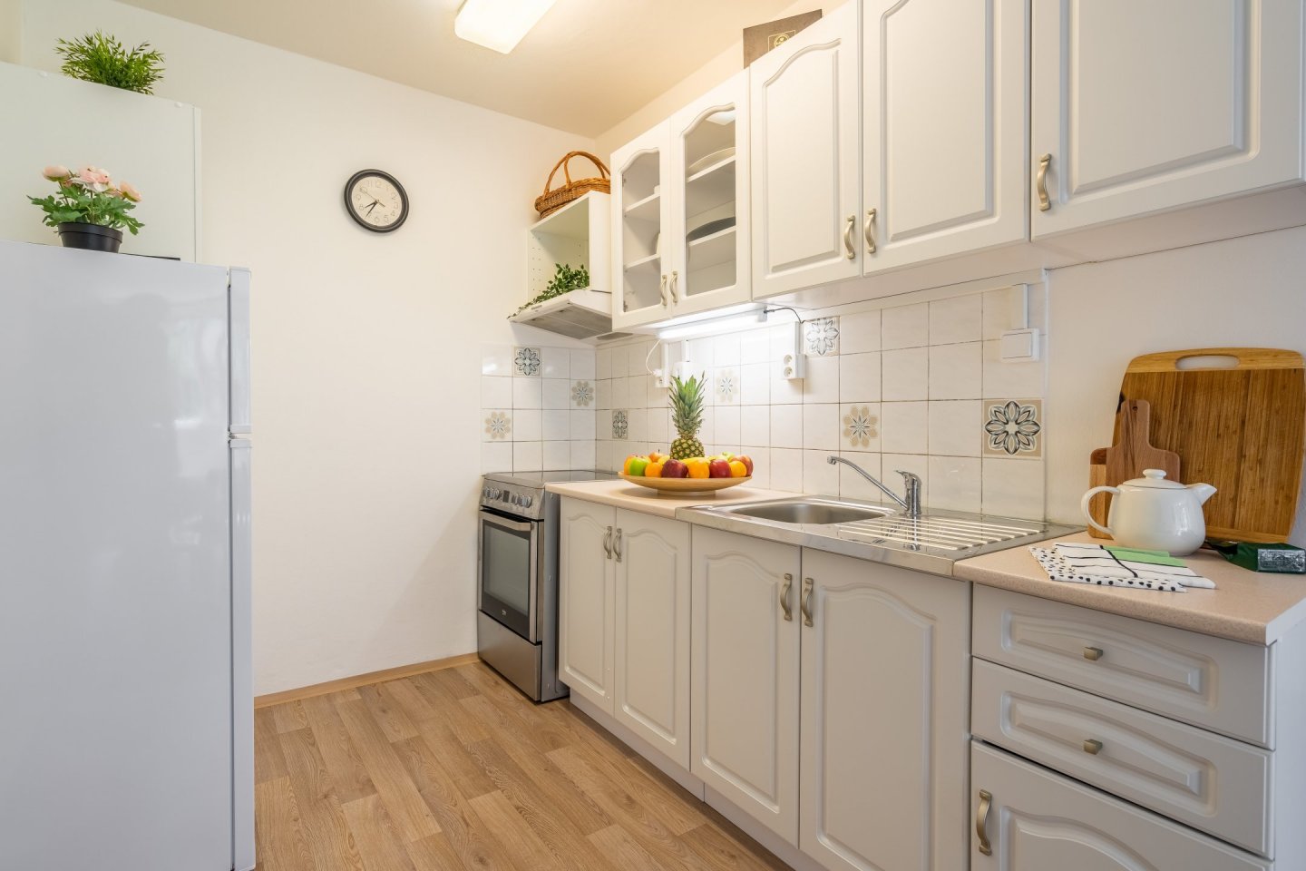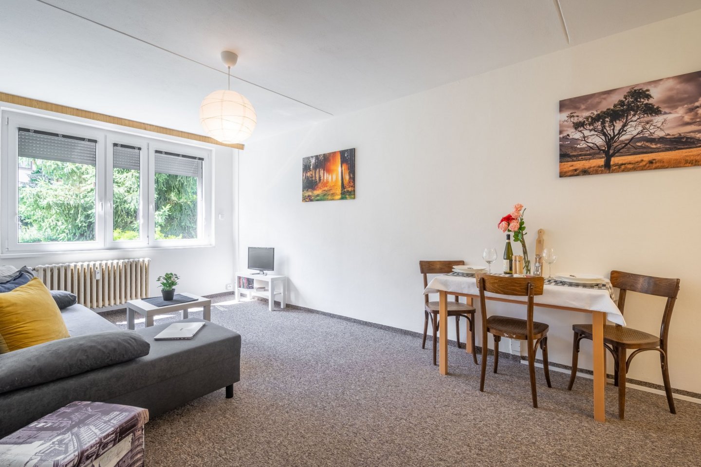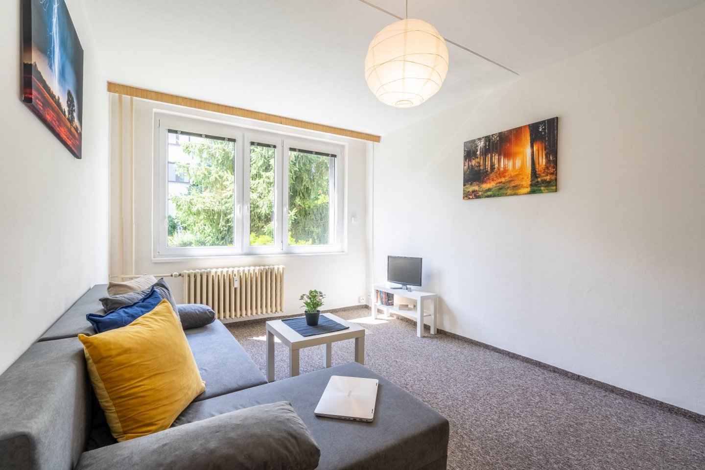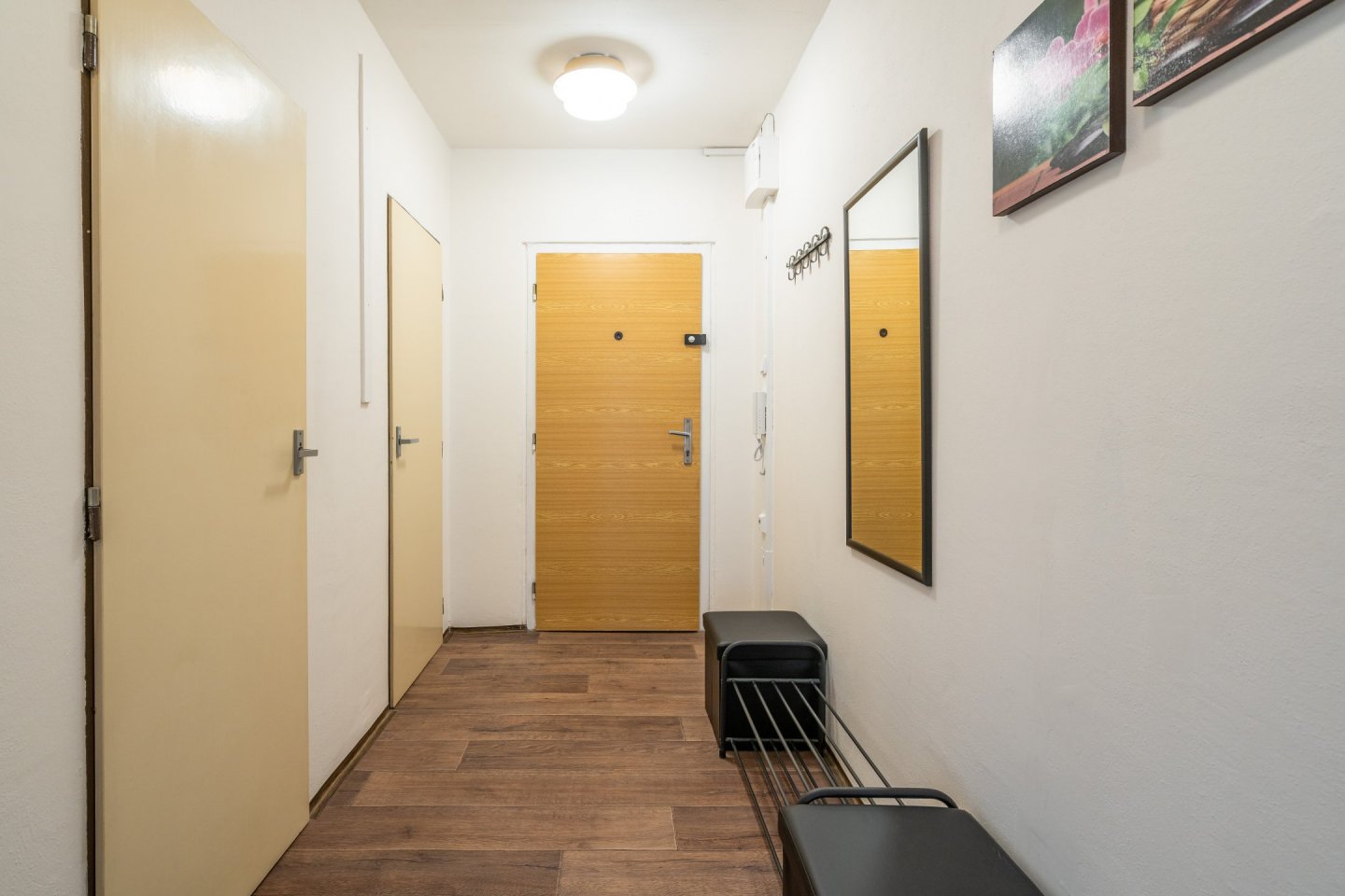 Dovolujeme si Vám nabídnout velmi pěkný a útulný byt 2+kk o velikosti 46,5 m2 + sklepní kóje 2 m2, v osobním vlastnictví. Byt se nachází ve zvýšeném přízemí (cca 3 m nad zemí) s orientací na JZ do zahrady čtyřpodlažního domu v klidné části Prahy - Stodůlky. Hned za domem je krásný park s cyklostezkami a Stodůleckým rybníčkem, naprosto úžasné místo pro relaxaci příjemné procházky. Stejně tak jako případné posezení a jiné sportovní vyžití. Metro Lužiny a Luka 5 min. Pohodové parkování před domem a veškerá občanská vybavenost v docházkové vzdálenosti.